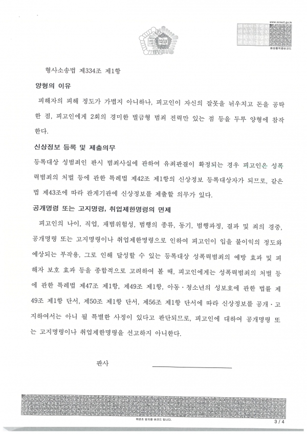 내용피고인은 성폭력범죄의처벌등에관한특례법위반으로 기소되었으나, 법무법인 명의 적극적인 변론을 통해 본 사건에 관하여 2019.4. 25. 벌금형 처분을 선고받게 되었습니다. |